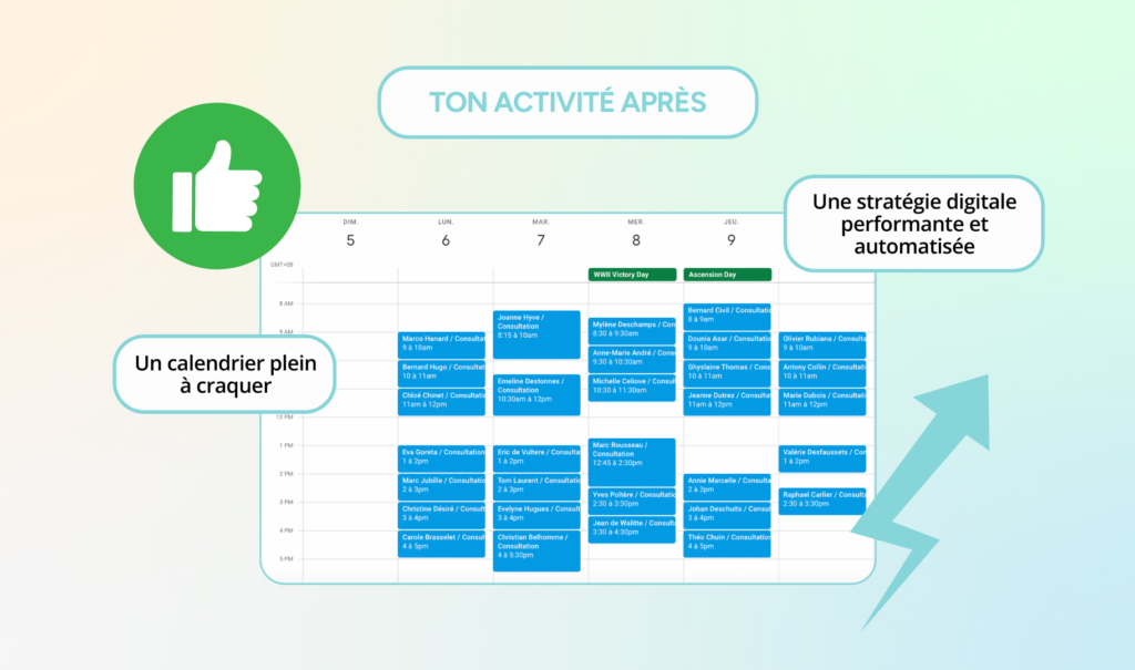 Après des mois avec un cabinet rempli à 30%, notre solution a permis à Erwan de tripler son chiffre d’affaires pour atteindre les 8000€/mois minimum.